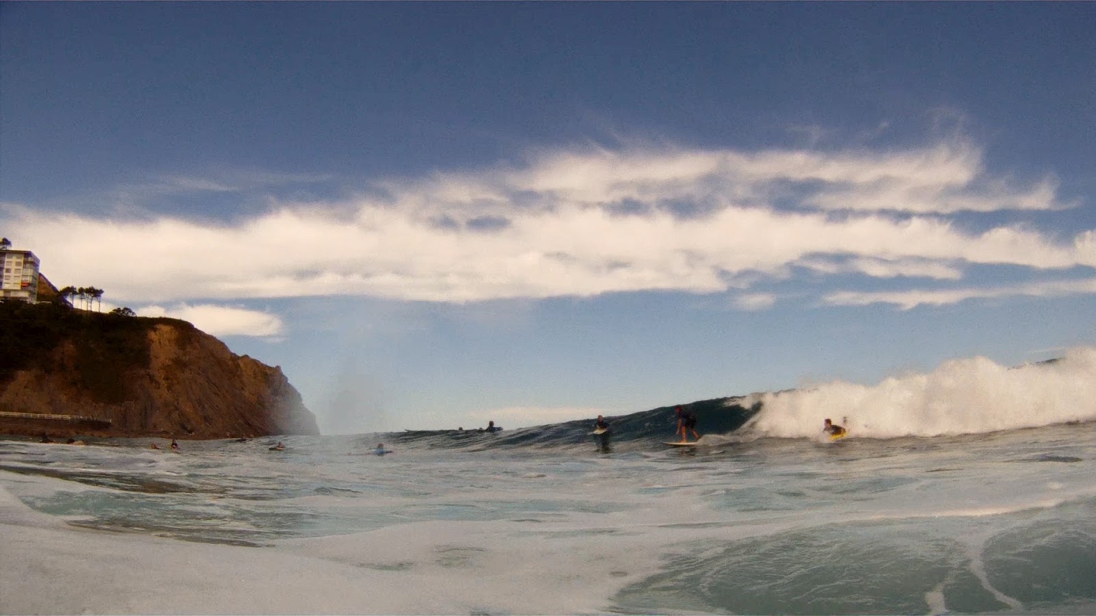 Estas son las fotos del jueves 16, por la mañana y por la tarde, en Bakio, entre el 1,5 y los 2 metros marcaba en Windguru y acertaron bastante bien jajajaja